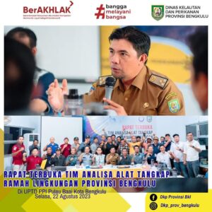 Gubernur Bengkulu Rohidin Mersyah hadiri acara Silahturahmi bersama Petambak Udang Se-Provinsi Bengkulu di Gedung Daerah Balai Raya Semarak Bengkulu, Jumat 27 Oktober 2023. Turut hadir Asisten II, Kadis PMPTSP, Satwas PSDKP Bengkulu, Tim dari LPSPL Serang, Kepala Dinas Kelautan dan Perikanan Kab/Kota dan SCI (Shrimp Club Indonesia) Bengkulu. 37 Petambak Se-Provinsi Bengkulu hadir dalam silahturahmi di sambut langsung oleh Kepala Dinas Kelautan dan Perikanan Syafriandi. “Alhamdulillah 37 petambak hadir, 29 dari Kaur, 1 dari seluma, 7 dari bengkulu utara dan bengkulu tengah”. Lebih lanjut Syafriandi menyampaikan 4 hal penting terkait kegiatan budidaya udang di Provinsi Bengkulu. Pertama, terkait perizinan usaha, kedua harapan agar udang vaname ini kedepannya bisa dikirim melalui bengkulu lewat pelabuhan pulau bai, ketiga DKP Provinsi mengajak petambak untuk berinovasi, keempat DKP Provinsi dan SCI Bengkulu dapat berkolaborasi. Sehingga tercapai tujuan bersama yaitu aman dan nyaman. Ketua SCI Bengkulu Soleman Lullulangi berharap kerjasama yang baik dengan Pemerintah, khususnya dalam hal pengawasan dan pembinaan. Terlebih dalam pembinaan, dikarenakan kondisi tambak banyak terserang penyakit. Lebih lanjut beliau menyampaikan agar perizinan dapat dipermudah dan diberikan pembinaan. Sehingga dapat mendatangkan investor yang lebih banyak dan memberikan kontribusi pembangunan untuk Provinsi Bengkulu. Pada kesempatan ini Gubernur Bengkulu menyampaikan,”Mulai hari ini, kita selesaikan serempak bersama. Perizinan petambak yang belum tuntas diselesaikan. Kolaborasi dengan dinas teknis dan dinas perizinan kab/kota untuk sama-sama menyelesaikan terkait Kesesuaian Kegiatan Pemanfaatan Ruang Laut”.Terkait kondisi tambak yang sedang mengalami kendala penyakit, Gubernur menghimbau untuk mulai memetakan penyakit yang sering menyerang udang budidaya dan jenis obat-obatan yang diperbolehkan. Sehingga dapat diberikan pendampingan konsultan penyakit. “Kita harus gagas dan komitmen bersama. Untuk mengelola dan berusaha secara produktif, sehingga usaha ini menguntungkan dan dapat menggerakan ekonomi Bengkulu”, lanjutnya.